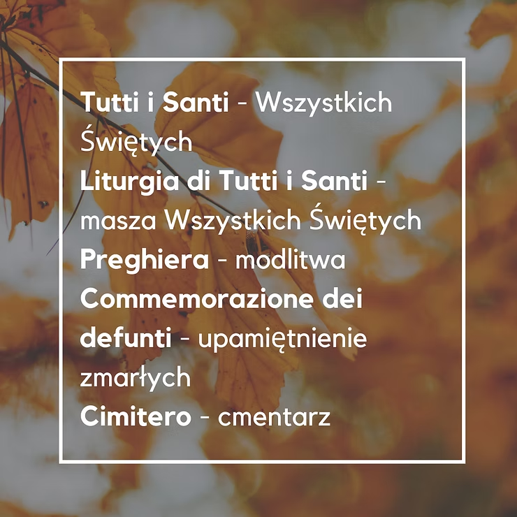 Warto zauważyć, że we Włoszech dzień po 1 listopada, czyli 2 listopada obchodzone jest święto zmarłych, znane również jako Dzień Zmarłych. W tym dniu chrześcijanie upamiętniają swoich bliskich, których już z nimi nie ma.